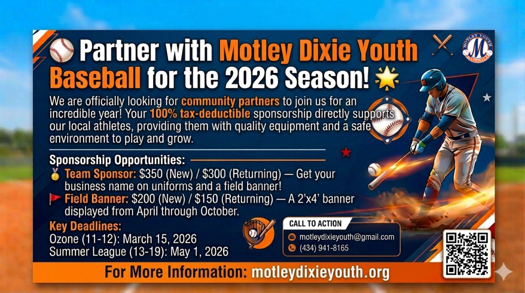 Why Your Support Matters Motley Dixie Youth is not affiliated with any town or county recreation department. We are 100% self-funded. We rely entirely on the generosity of local businesses and families to keep our programs affordable.